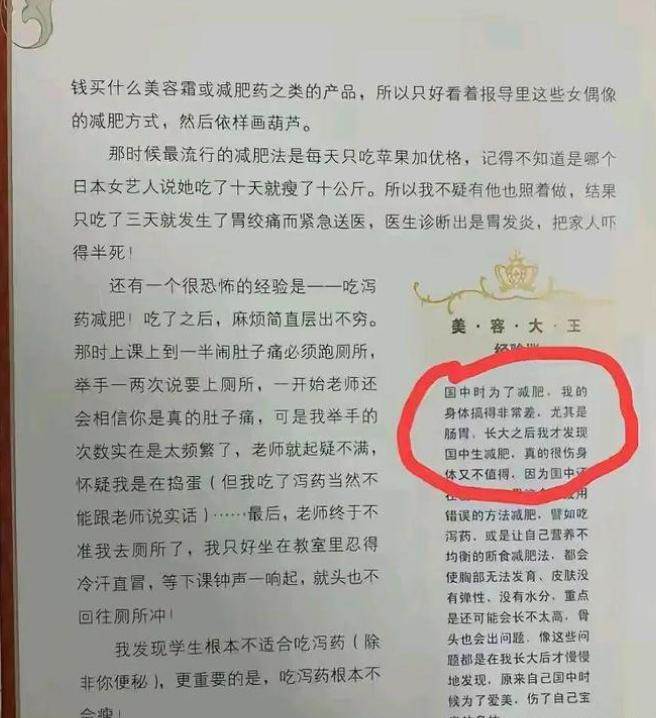 就這樣她的身體一點一點被掏空,以至于後來一場流感就能輕易把她帶走,變美不應該放在健康的前面。