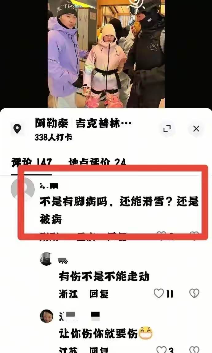 可就連放鬆滑雪,都沒能逃過網友的「審視」。有人翻出她之前腳部有傷的訊息,質疑聲鋪天蓋地:「不是說腳傷了嗎?怎麼還能滑雪?」「一邊說有傷,一邊不專注訓練跑去玩?」「到底是真傷還是裝傷?」各種質疑聲此起彼伏,把小姑娘的休假攪得不得安寧。18歲的年紀,本該是無憂無慮的青春時光,全紅嬋卻要扛著比賽成績的壓力、身體發育的難關、傷病的困擾,還要應對這些無孔不入的爭議,這份重量,普通人真的難以想象。