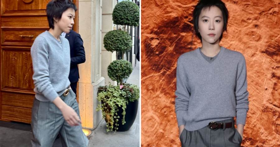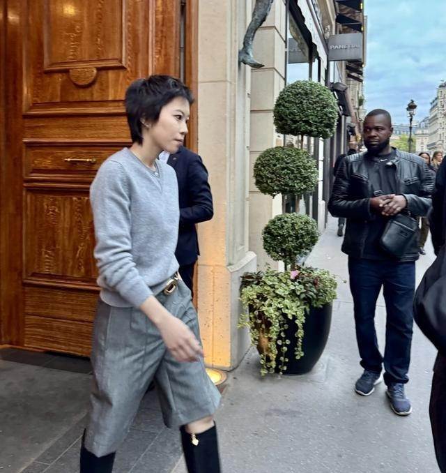 她穿了灰色毛衣配灰色短褲,黑色高筒靴,頭髮短而黑,站在台前顯得很自信。雙手插在口袋里,走路和上台都保持同樣的姿態。