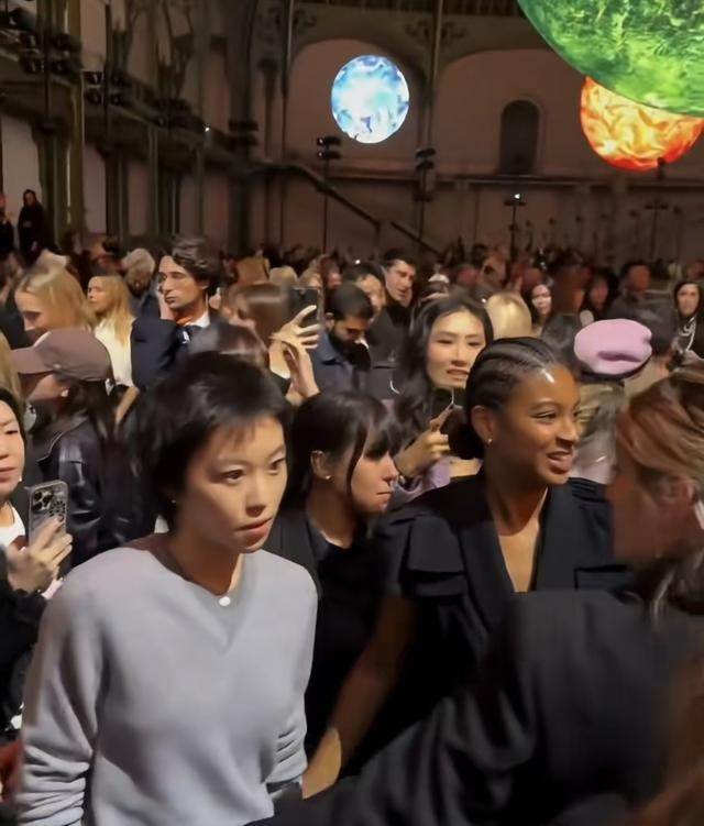 看秀的時候,她和周迅一起,與劉雯等人并列而坐。她的位置讓人注意到她在圈中的地位提升。