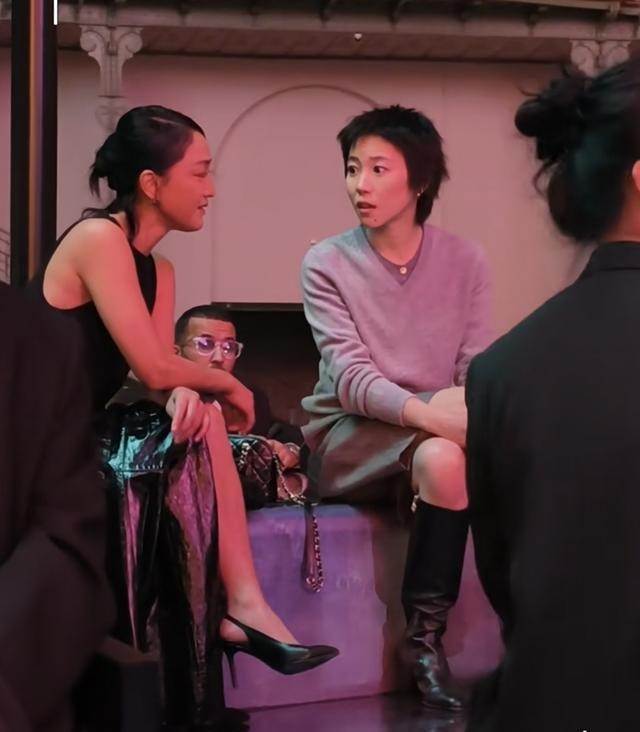 周迅也在秀場,兩人坐在一起交流很多。網友好奇她們討論的內容,但沒有公開。