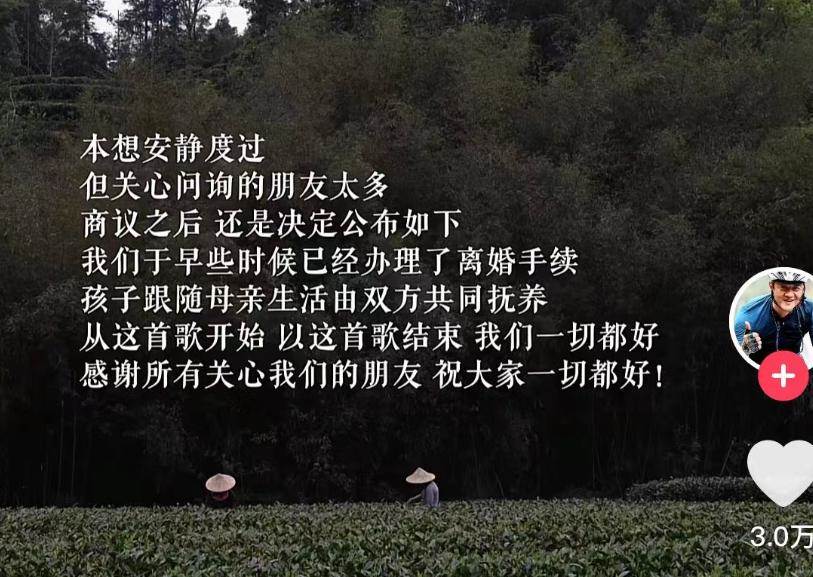 兩人發視訊說,已經離婚有一段時間了,現在選擇告訴大家,孩子跟媽媽生活。