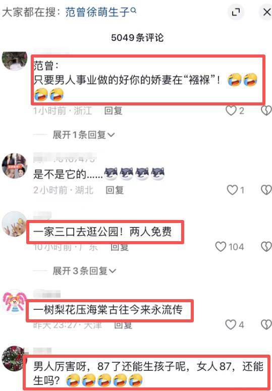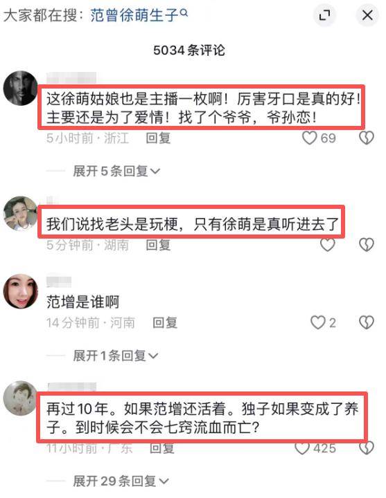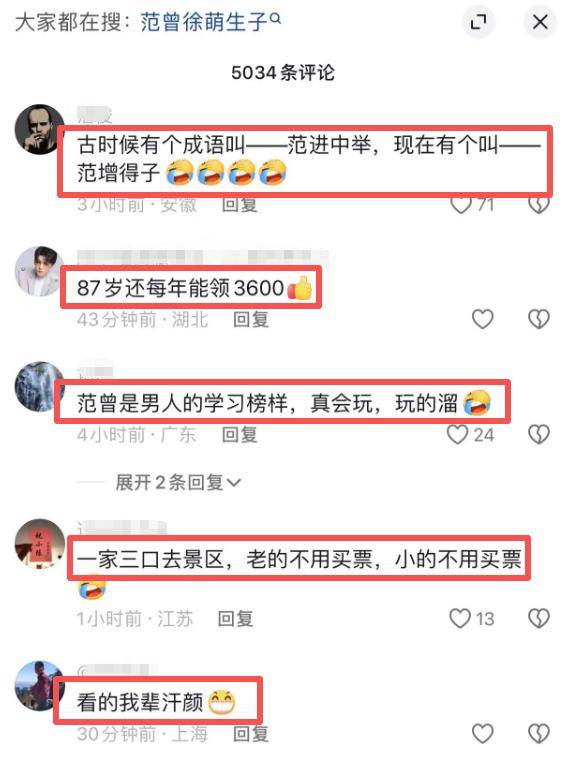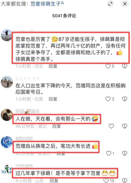 更有人說徐萌,【范老都87了,徐萌徹底掌控了他,現在又有了兒子,真是個高手】。