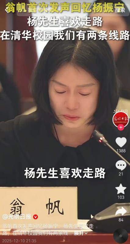 但偏偏12月10日,翁帆參加清華大學的活動,提到了亡夫楊振寧。
