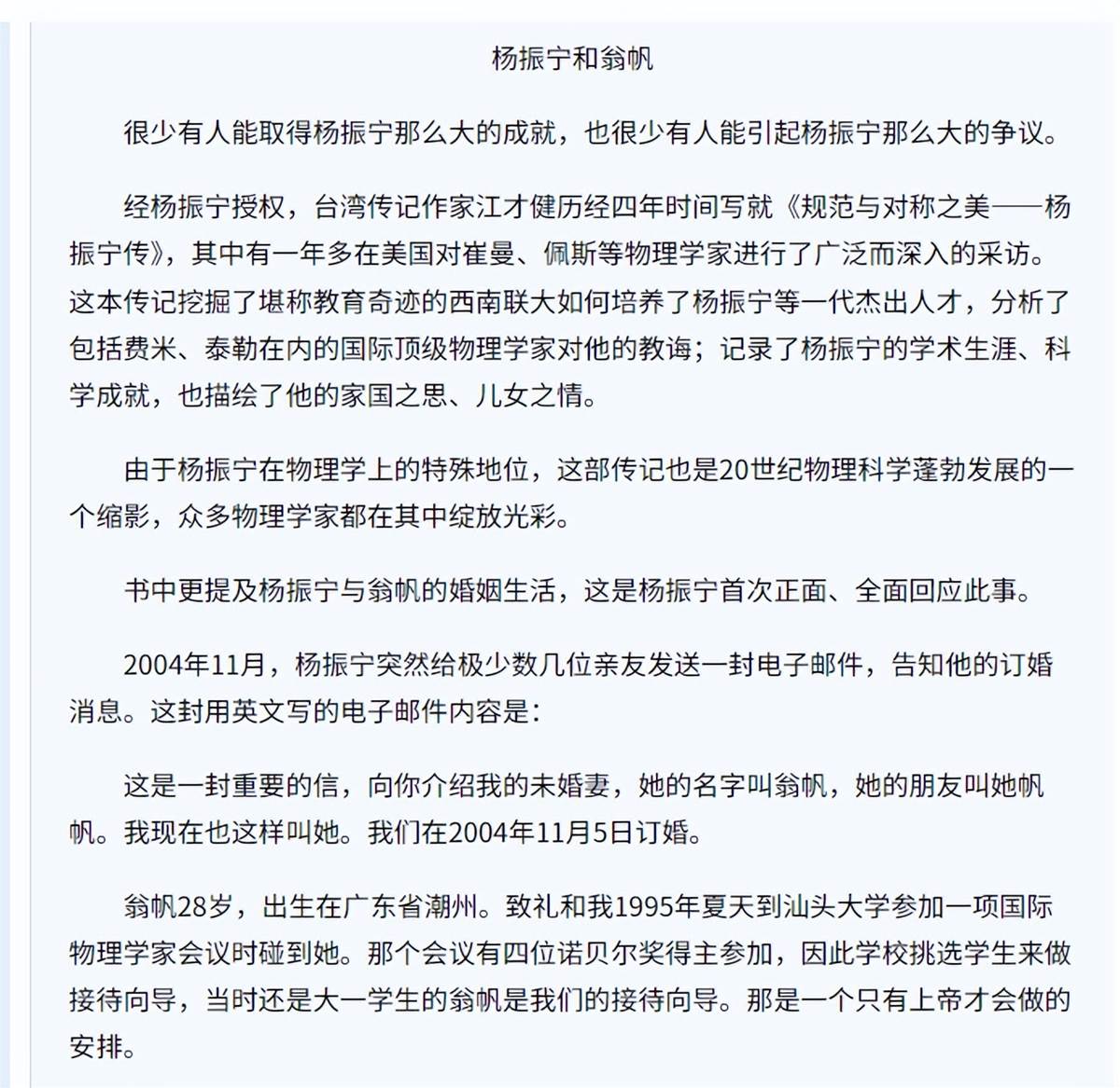 2004年11月24日,一則郵件在楊振寧的親友圈中引起了不小的討論。