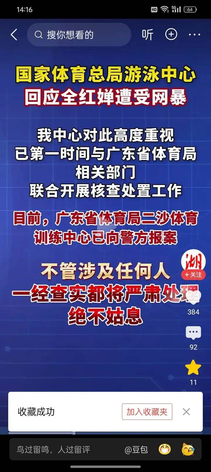 全紅嬋遭網暴,國家體育總局出手了。她所在的廣東訓練中心直接報警,游泳中心也正式發聲。這一下,那些在網上亂噴的人該慌了。