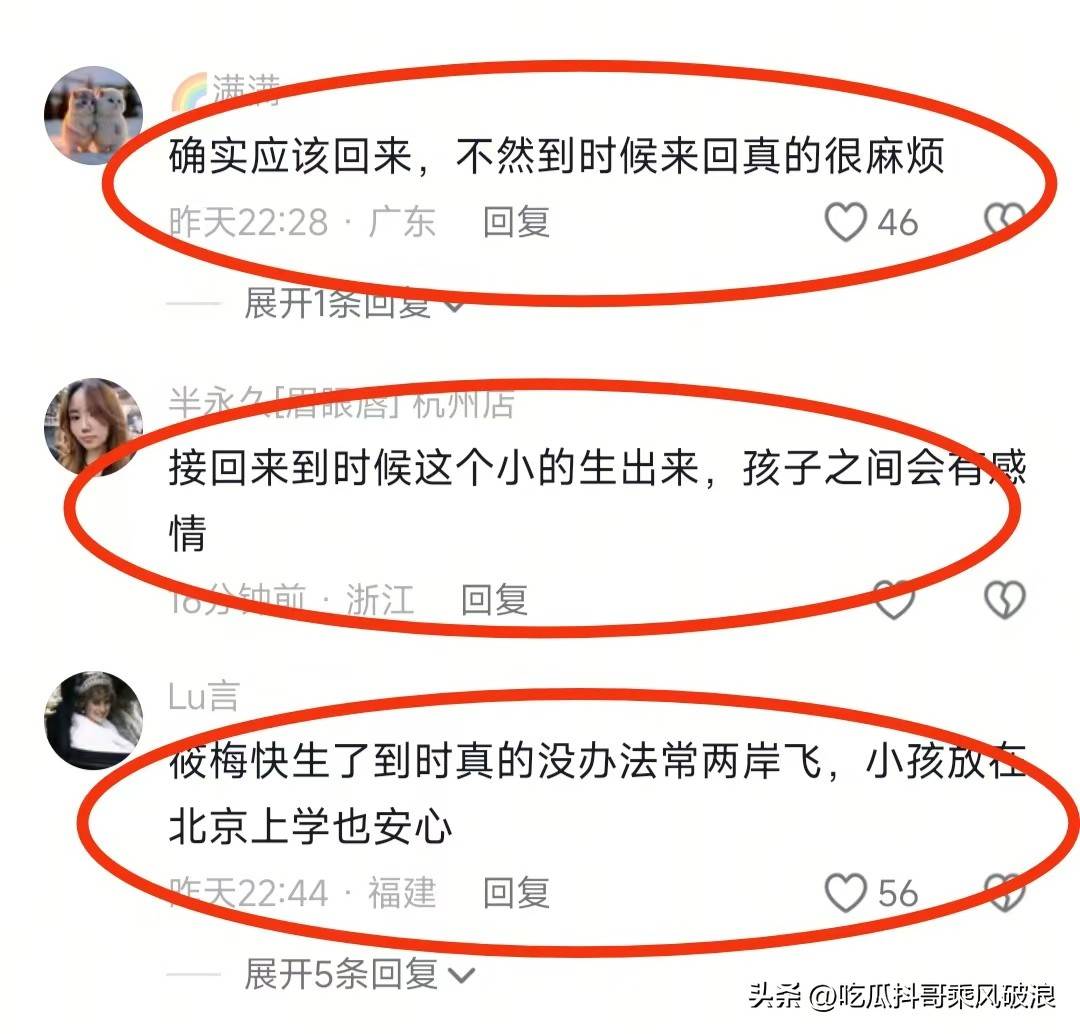 信號似乎已經很明顯了,既然灣灣很快就要「回家」,那麼,小玥兒小菻菻提早回京是好事。畢竟,灣灣回家后,灣灣的教育大機率要和內地接軌。