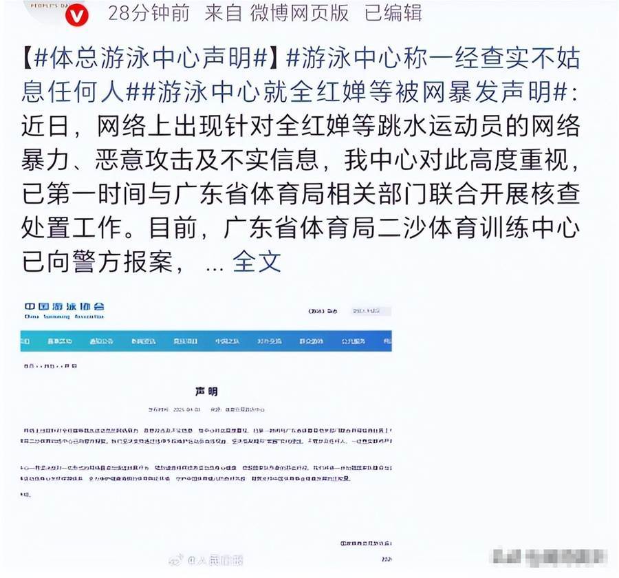 4月8日,新華社連發兩條重磅動態,國家體育總局同步發聲,全紅嬋所在訓練中心正式報案維權。