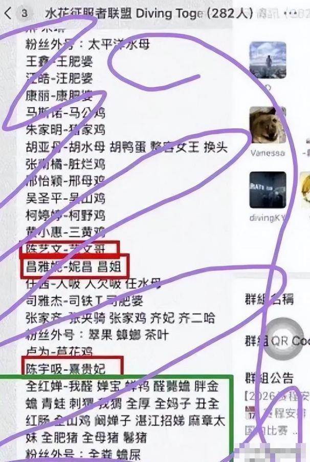 一個名為「水花征服者聯盟」的微信群,聚集了282名成員,群公告公然寫著「禁止攻擊其他運動員,全紅嬋除外」,雙標嘴臉令人髮指。