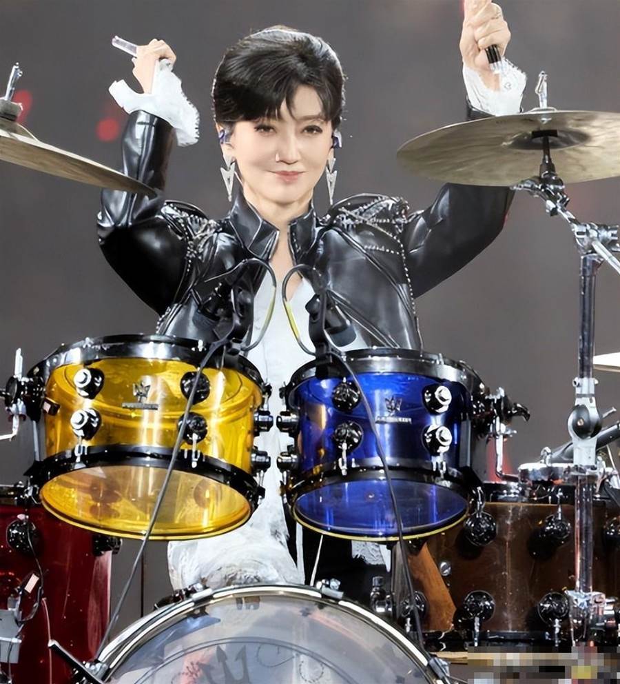 即使這麼多年過去了,她依舊是粉絲心中最美好的存在,今年她已經七十多歲了,還穿著皮褲敲著架子鼓表演搖滾版的《瀟灑走一回》。