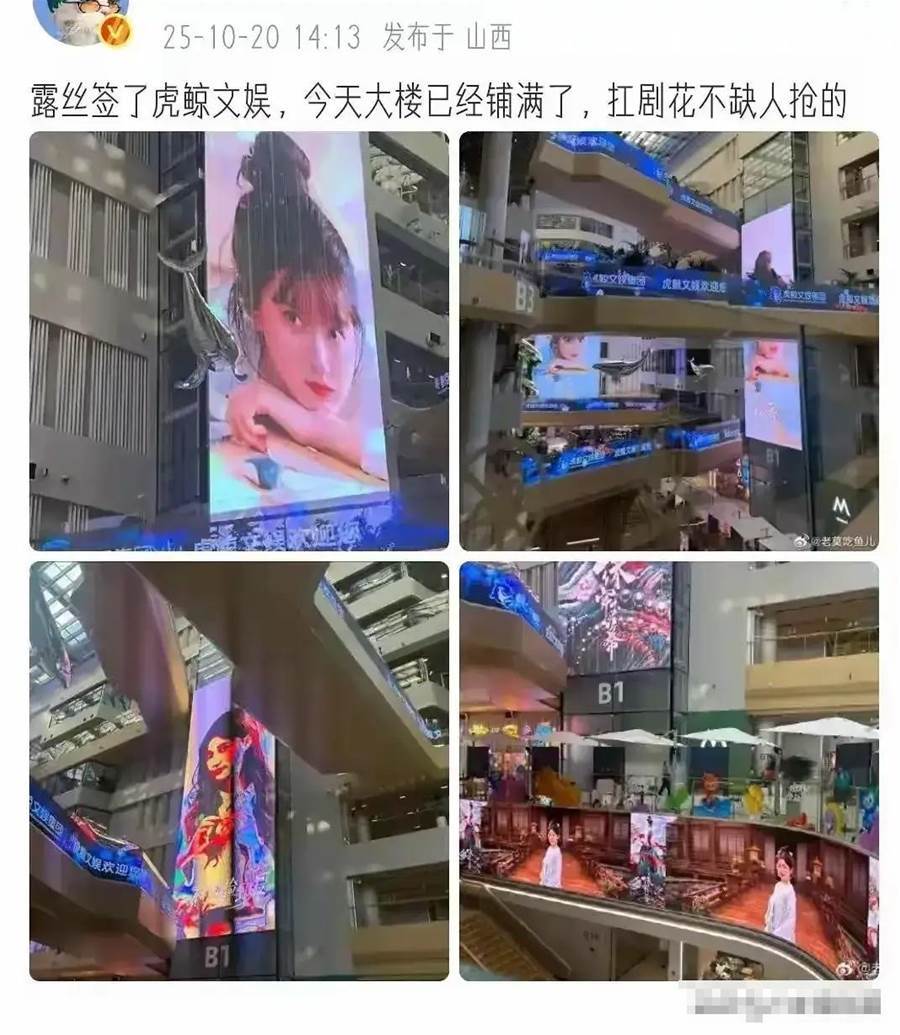 並且從簽約開始,整個大樓就鋪滿了趙露思的物料,大屏滾動的含金量只有粉絲才懂吧!
