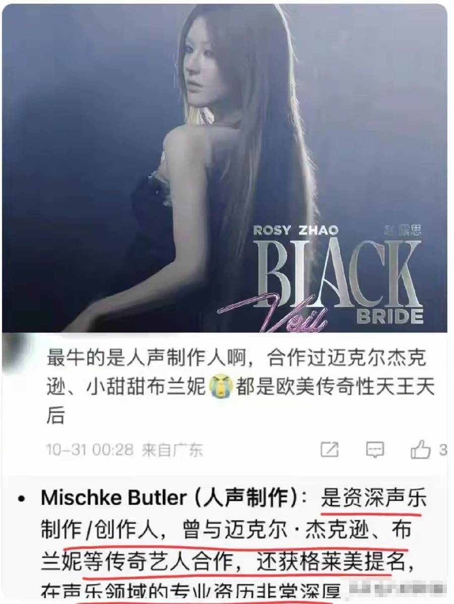 這次新歌一齣就斷層登頂音樂榜,新歌製作團隊更是格萊美班底,創作人是曾獲得八次格萊美的brian lee,製作團隊是邁克爾傑克遜、賈斯汀比伯合作過的頂級音樂團隊,甚至趙露思身體原因不便遠行,BrianLee親自飛赴成都進行錄音製作,可見對趙露思的重視。