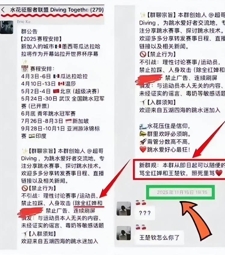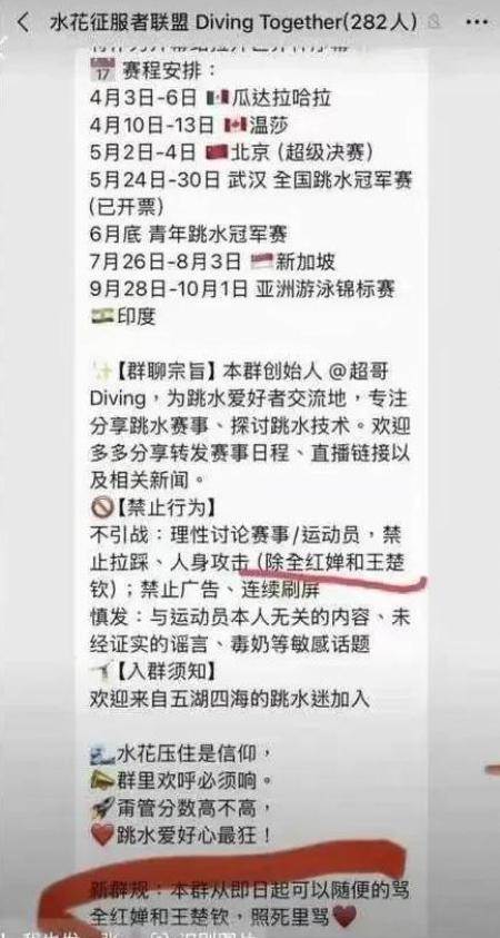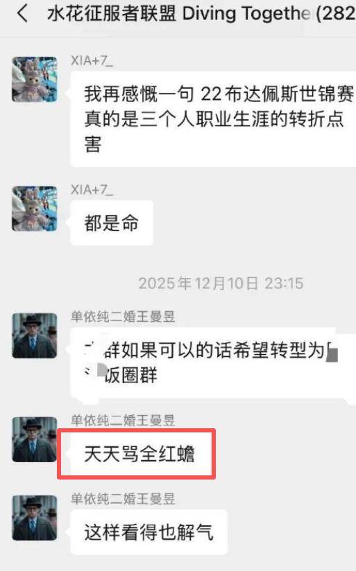 如今的訊息是扒出了一個將近300人的社交平臺群聊,從這個群聊的標題就能看得出來是專門聊跳水方面的事情的。