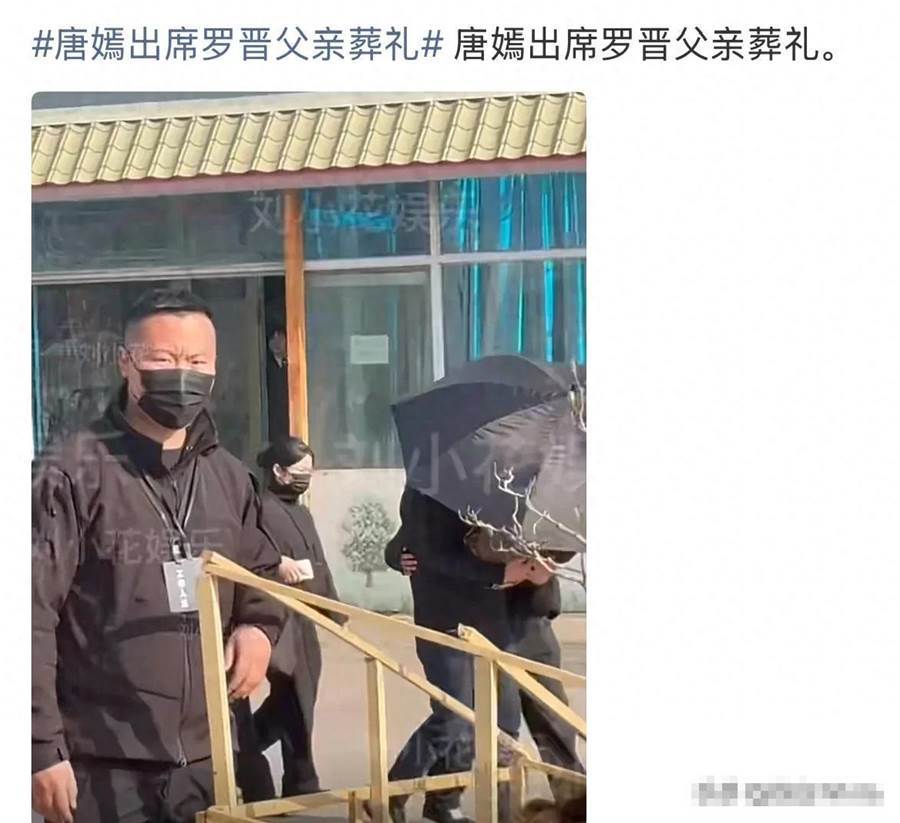 正午時分,羅晉抱著父親照片從告別堂走出,唐嫣身穿黑色大衣,緊隨其後,兩位女性親友護衛在側,避免她被打擾!