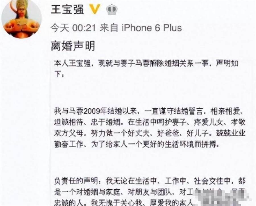 王寶強離婚的心意已決,其工作室發布了王寶強起訴馬蓉離婚。