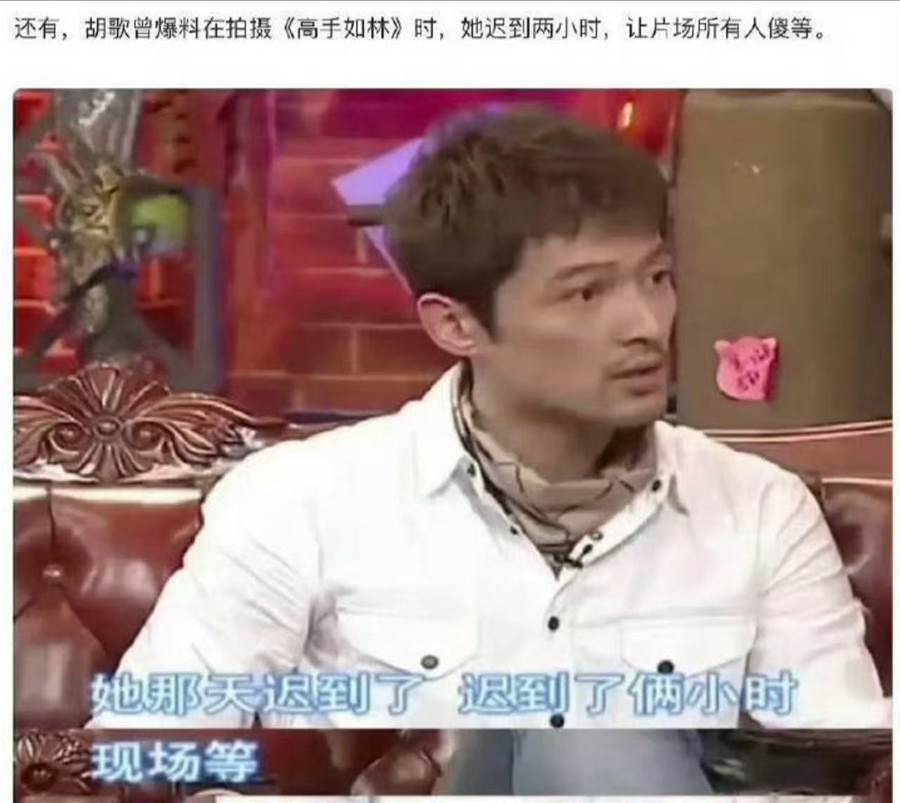 胡歌就曾在節目中說唐嫣遲到兩個小時,讓片場所有人傻等,顯得特別沒有職業道德。