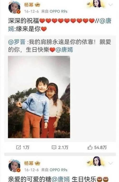 兩人經常在社交平台上「秀友情」,直到有一年,楊冪像往年一樣對唐嫣送生日祝福,還祝她能找到一個真命天子。