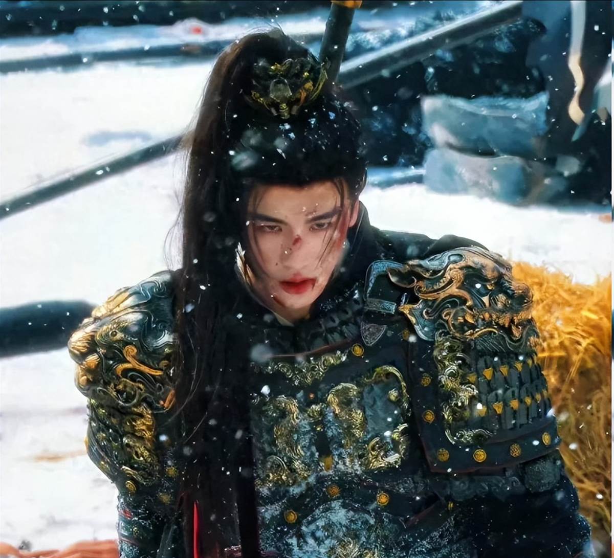 但呈現在鏡頭前的他,皮膚白到發光,妝容精緻細膩,打完仗鎧甲一塵不染,連個汗漬都看不見。
