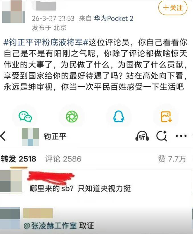 按理說,官媒都下場了,輿論風向也該轉了,可張凌赫的粉絲偏不,大量粉絲湧進鈞正平的評論區,用一套套控評話術刷屏。