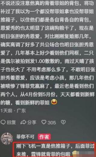 不少人認為兩人的感情也不過如此,事實上,在被拍到這個畫面之前,謝先生也推了行李箱,看人家小情侶都完全不在意這事,天后還湊到謝先生的身旁和他悄悄說著什麼,看背影都能感覺到她的開心。