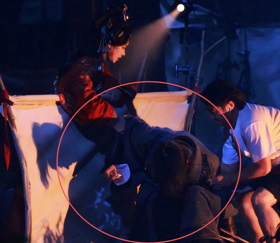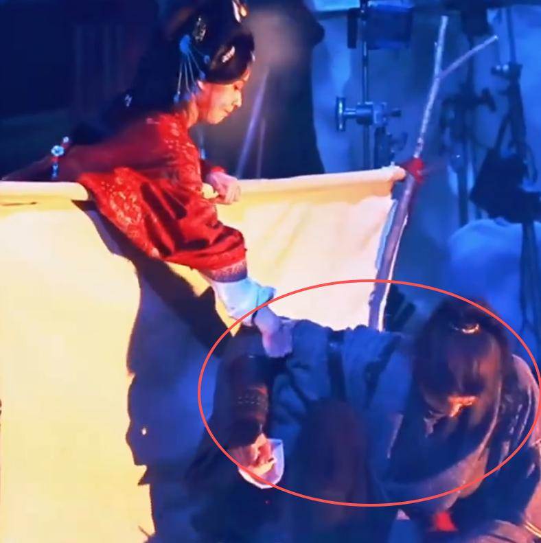 而一旁與他對戲的林允,再看到這樣的情況後,立馬就伸手從屏風後拉著他,可奈何力氣不夠,沒能直接把他攙扶起。