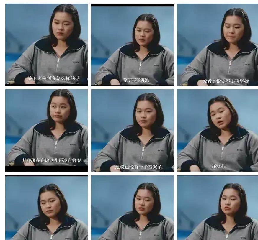 這句其實很關鍵,說明她的自我認同,過度地繫結在「我是全紅嬋,這個奧運冠軍,這個跳十米臺的人」這幾個標籤上了。