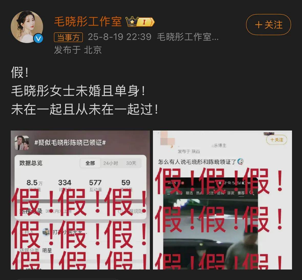 嚇得毛曉彤工作室緊急闢謠,傳聞皆假。