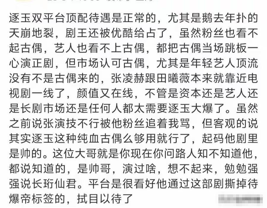 話說回來,這種現象在行業內不是一天兩天了,過度追求「白幼瘦、精緻美」屬于多數古偶通病,為什麼偏偏張凌赫被當成了活靶子?離不開粉絲的推波助瀾。