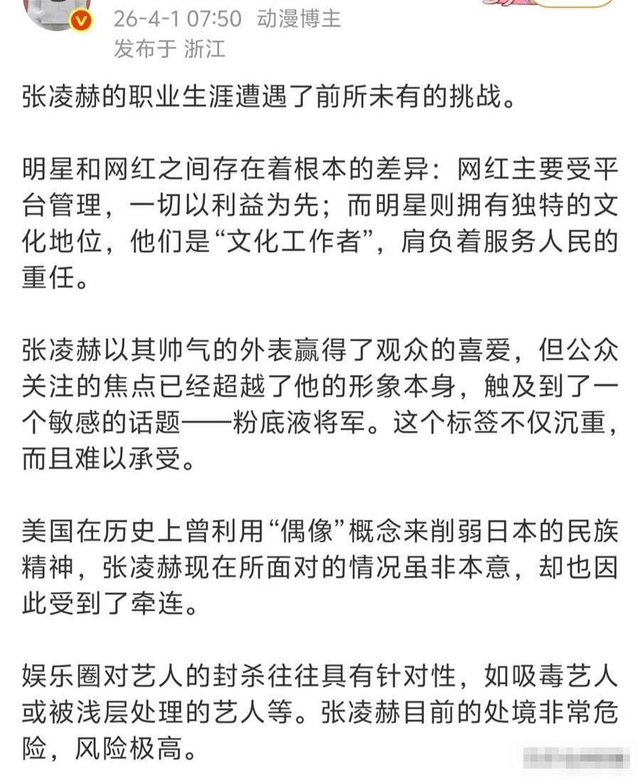當越來越多業內下場,作為「粉底液將軍」的張凌赫,已然成為了眾矢之的。