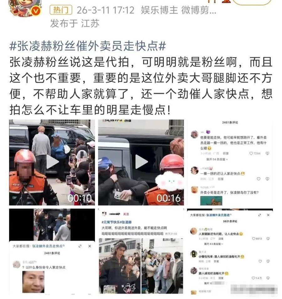 線下粉絲為了更好地看清張凌赫,催促路過的外賣員快點走,關鍵是這位外賣員腿腳看起來還不方便。