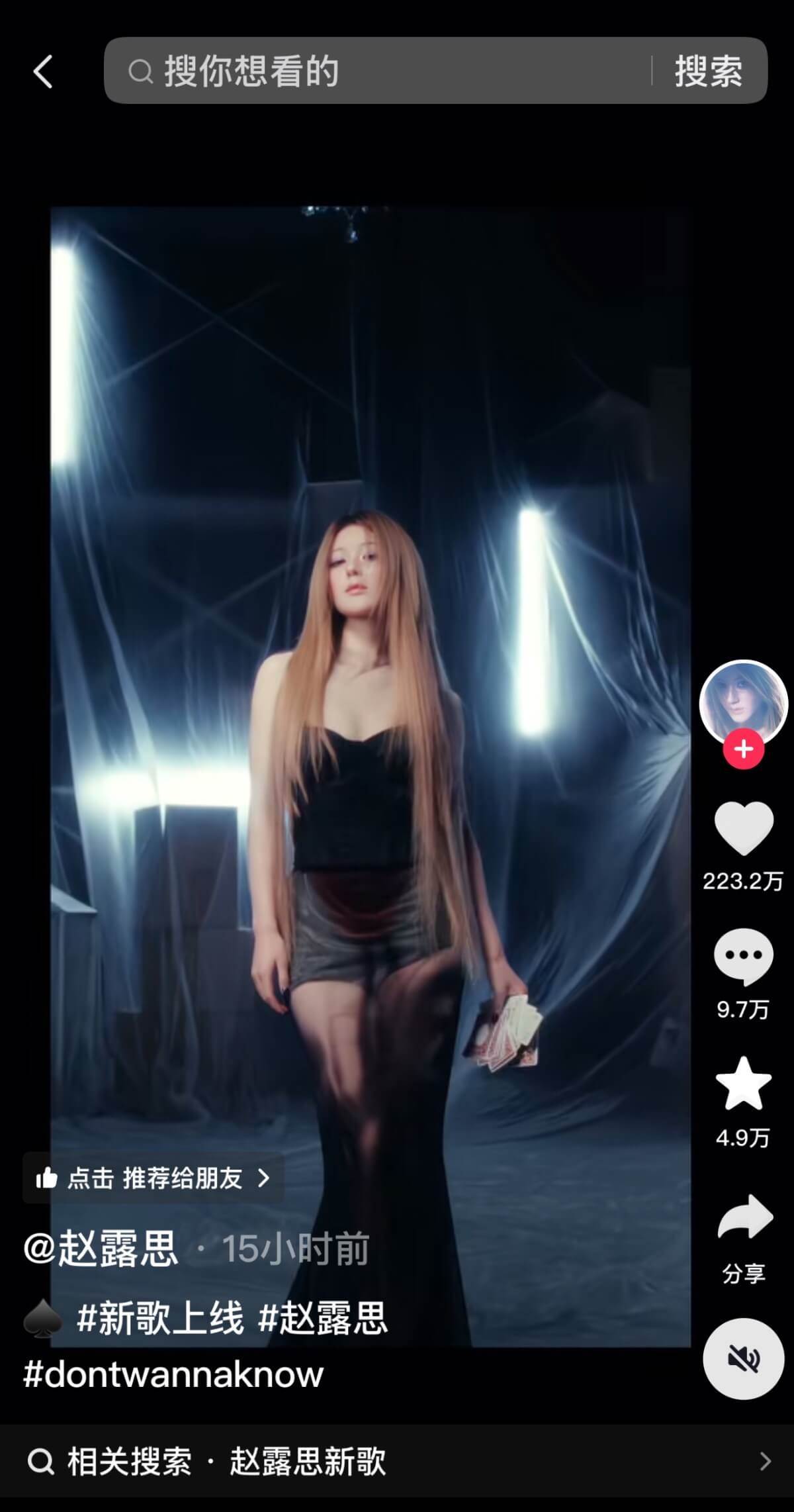 同一天晚上8點30分,趙露思發布第二首新歌《Don’t Wanna Know》預告,結果同樣含撲克牌元素?