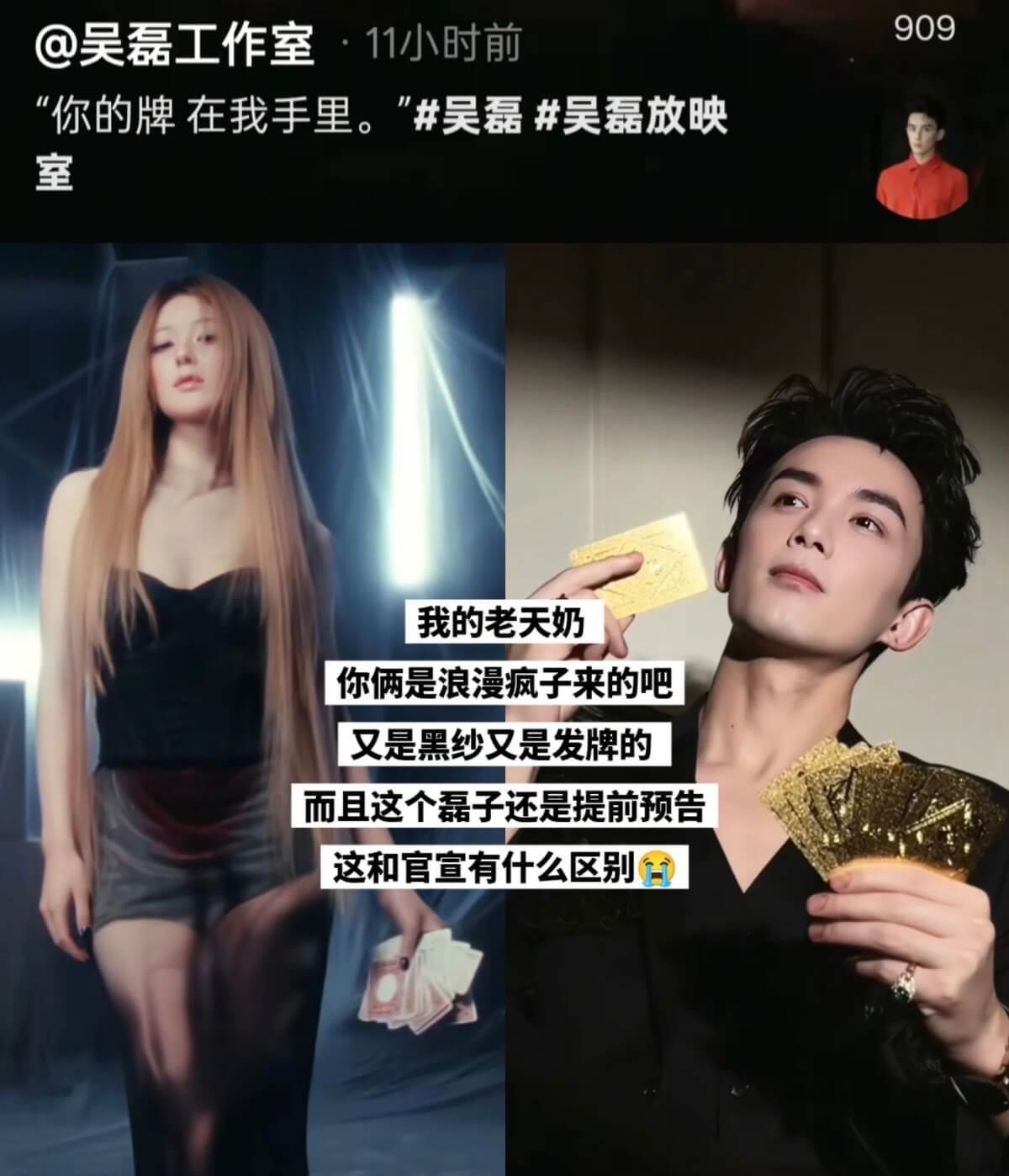 讓CP粉驚訝的是,吳磊工作室11月1日中午的帖文,就出現撲克牌元素,配文「你的牌在我手中」?
