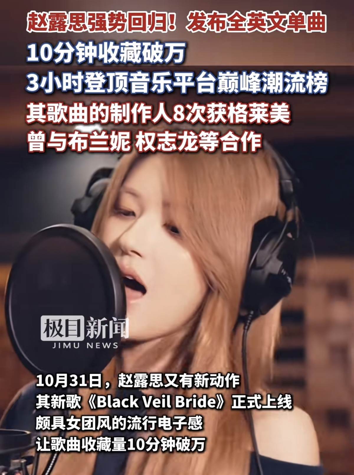 趙露思是真的很酷,與東家的糾紛鬧得人盡皆知,很多人以為她要就此低沉,攜全英文單曲強勢迴歸,10分鐘收藏破萬,3分鐘登頂巔峰潮流榜,其音樂製作人曾8次獲得格萊美獎,曾合作布蘭妮,權志龍等頂流。
