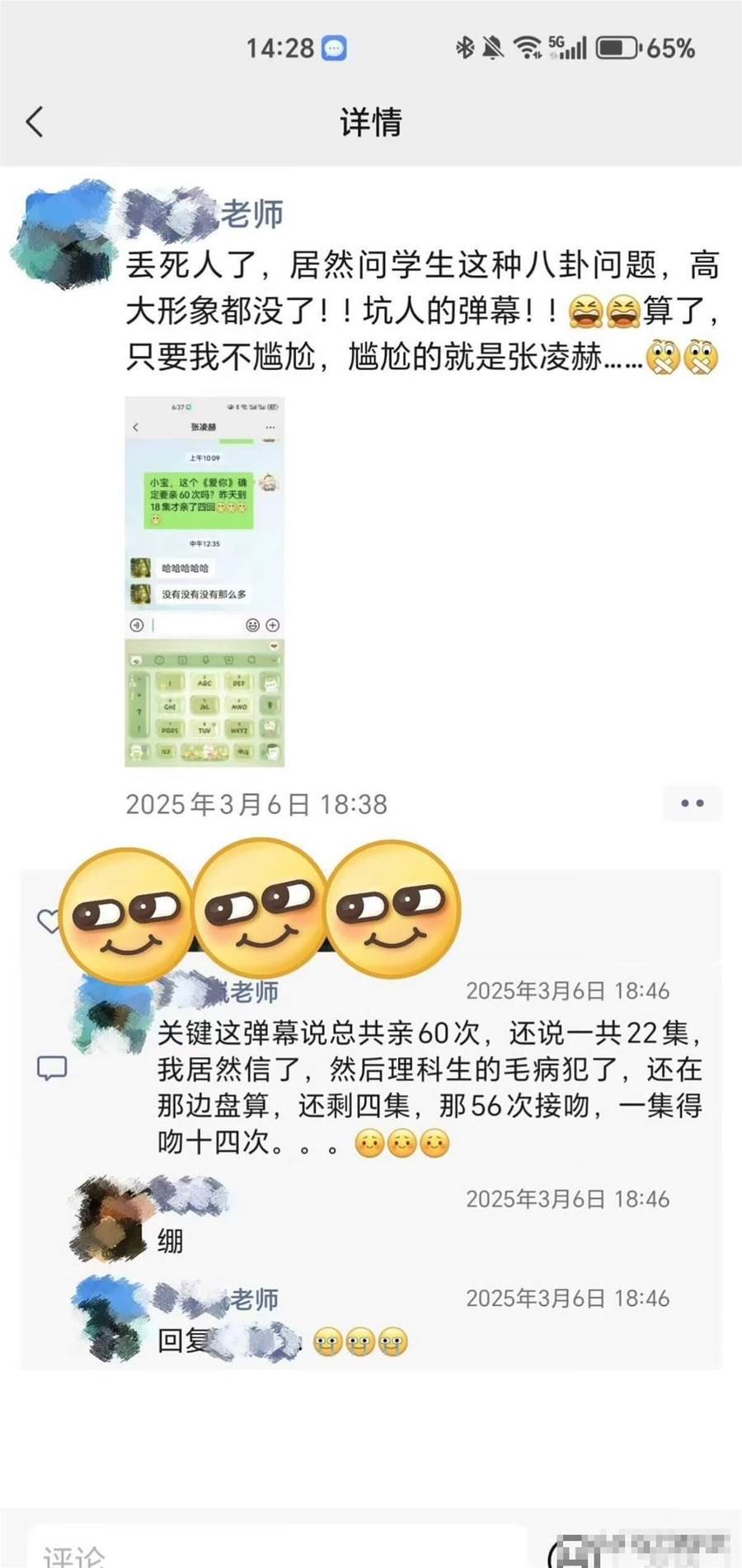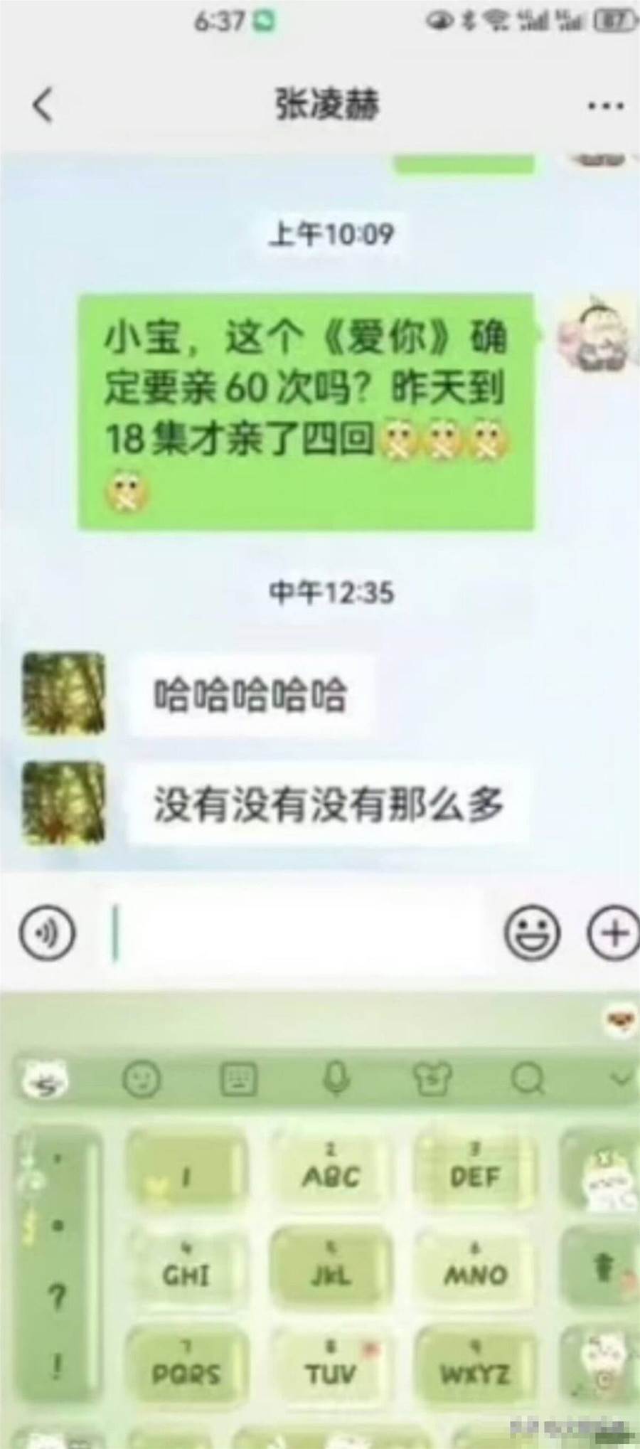 這位老師還曾發過朋友圈,表示在看他和徐若晗主演的《愛你》,發現彈幕提到了整部劇的吻戲次數,一時好奇還向張凌赫求證。