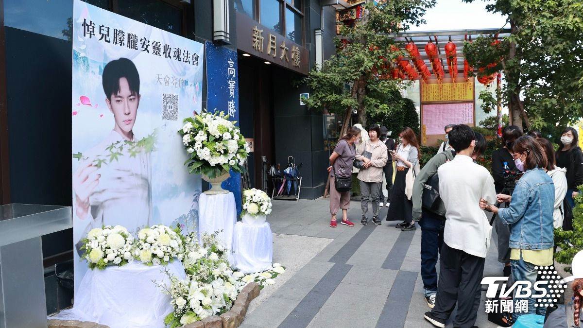 法會于17日在板橋新月會館舉行,孫德榮身穿一身黑衣,在中午11點40分由身邊人攙扶入場。會場門口擺放于朦朧身穿白衣、手撫葉子的半身照,周圍以白色花朵點綴,場面令人不勝唏噓。