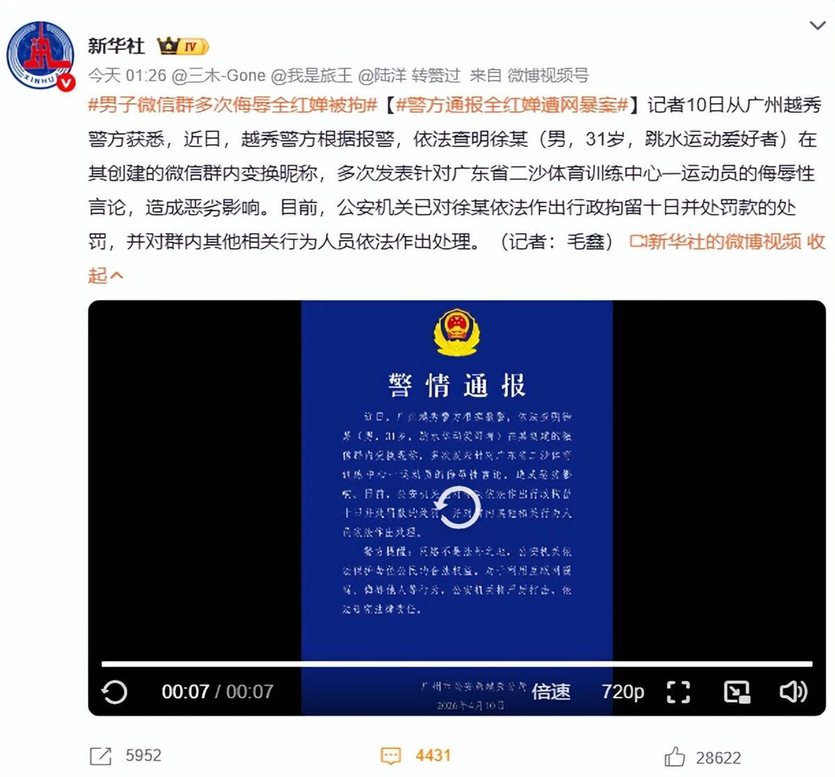 最近全紅嬋遭受網暴的事相信很多人都關注到了,當時被曝出和一個群聊有關係,既然嬋寶已經報警並且引起體育界的關注,想必她已經受到了非常嚴重的傷害。
