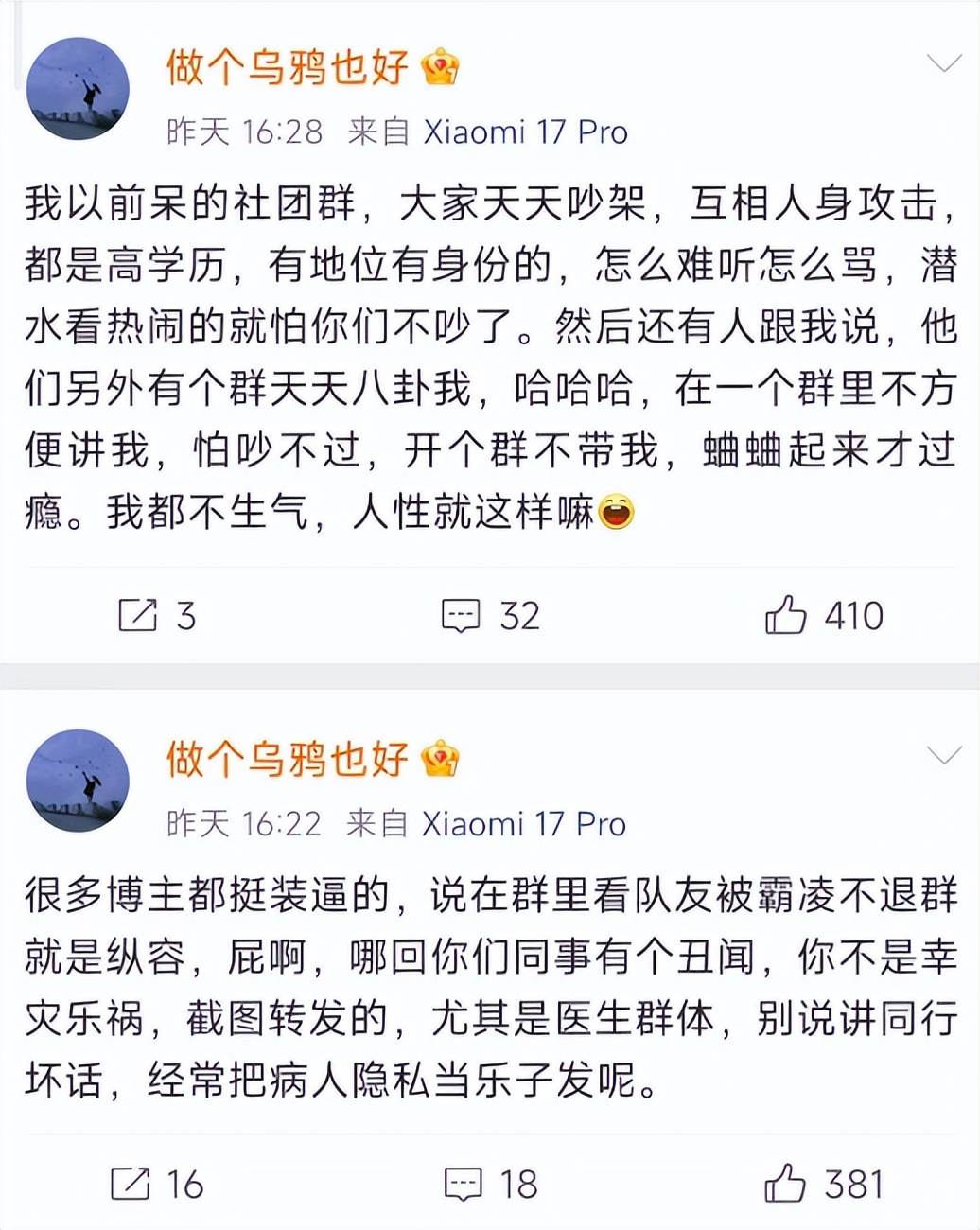 甚至還大言不慚地說自己以前待的社團群天天吵架、互相人身攻擊,高學歷有地位的人都這麼幹,全紅嬋報警就是小題大做,人性本就如此。