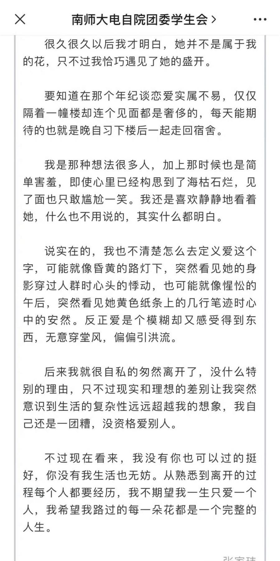 最後,來看看張凌赫在大學時期,寫過的有關暗戀的文章,不得不說,雖然是理科學霸,但張凌赫的文筆真的很細膩,真的和武安侯一樣,能文能武啊!