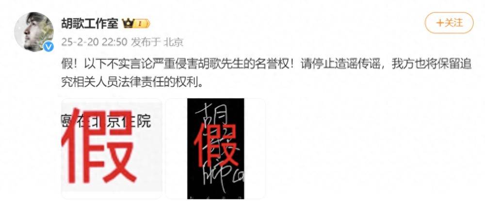 假!以下不實言論嚴重侵害胡歌先生的名譽權!請停止造謠傳謠,我方也將保留追究相關人員法律責任的權利。